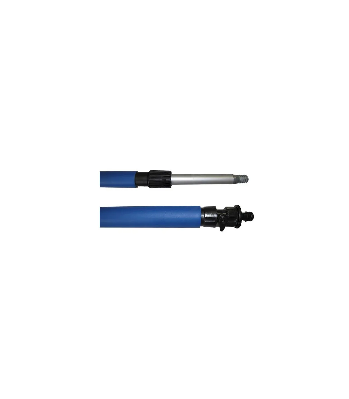 Ce manche télescopique est composé d'aluminium avec mousse protectrice bleu et un passage d'eau.