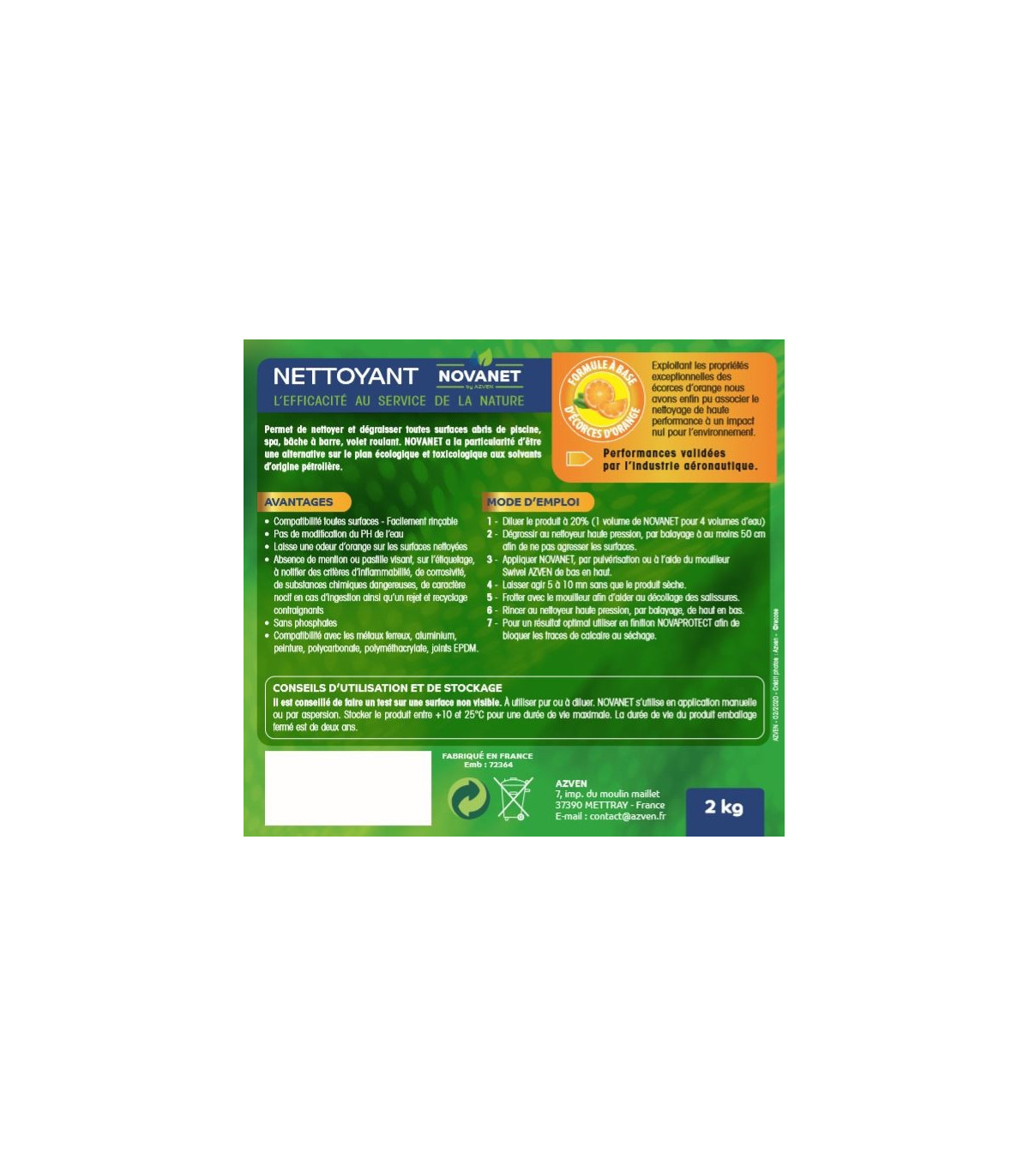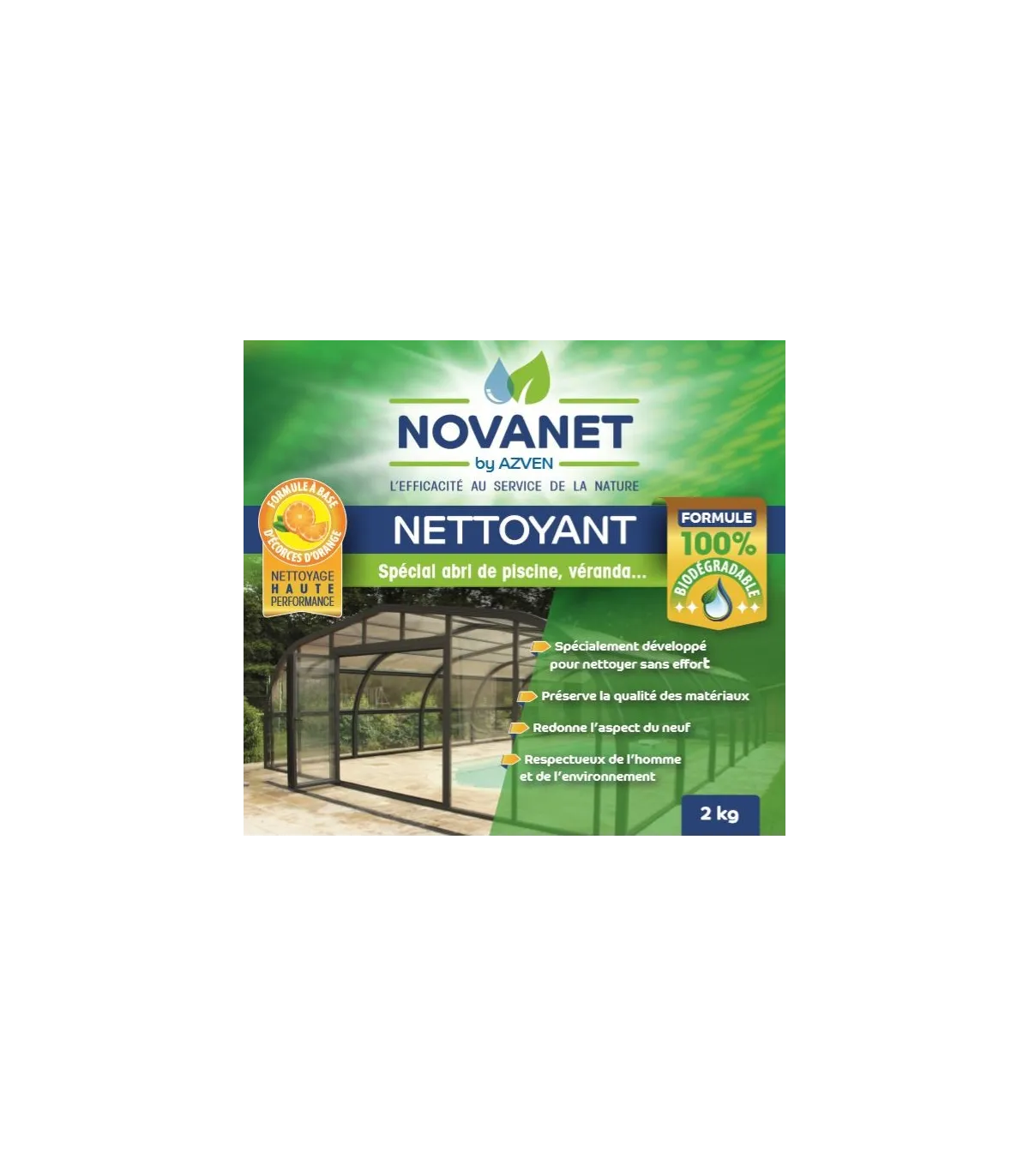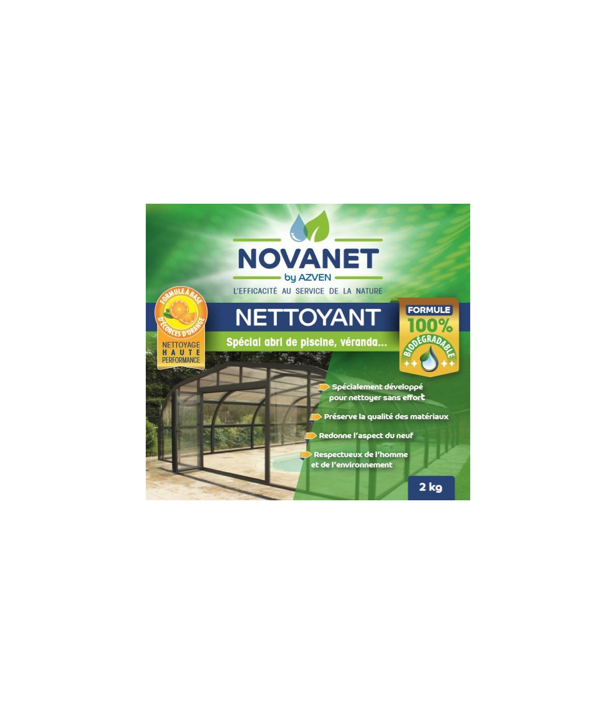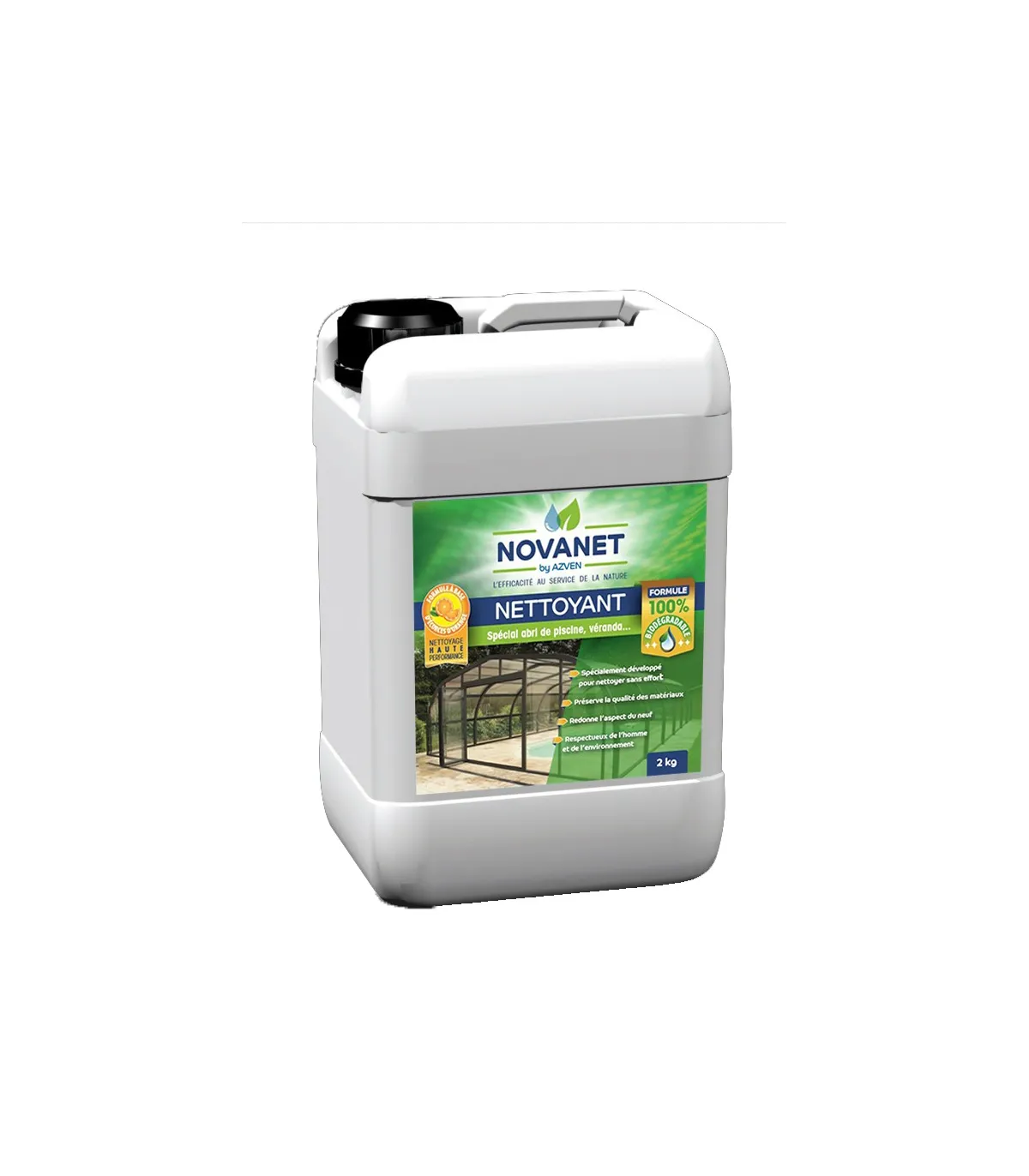 Ce produit permet de nettoyer et dégraisser toutes surfaces : abris de piscine, spa, bâche à barre, volet roulant... NOVANET a la particularité d'être une alternative sur le plan écologique et toxicologique aux solvants d'origine pétrolière.