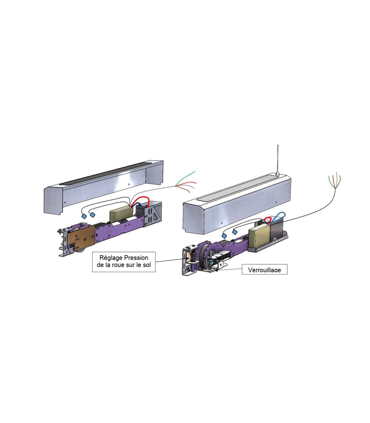 La motorisation "L-LINE" a été spécialement développé pour déplacer les abris mi-haut réalisés avec des panneaux polycarbonate; Kit complet composé de :